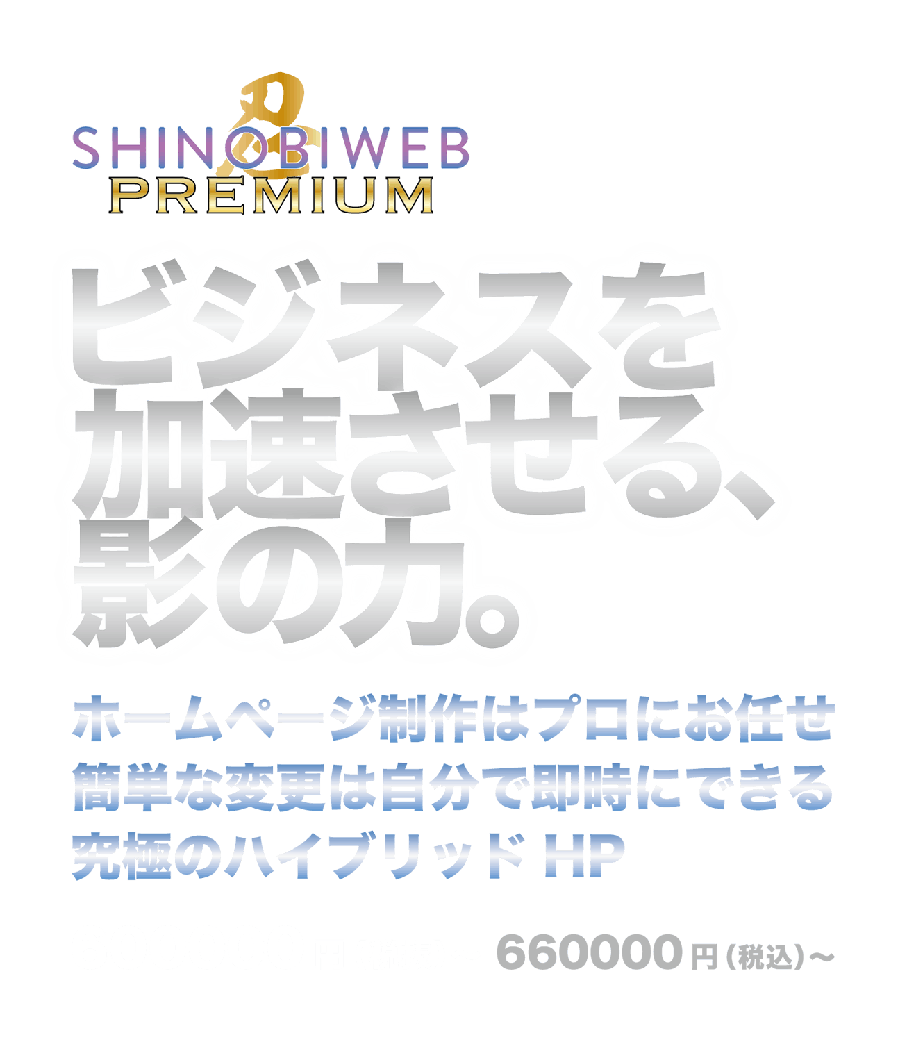 ヒログシクミデザインの大人気WEBサイト、SHINOBI-WEBプレミアムは、御社だけのオリジナルデザインでありながら、専門知識不要でホームページをらくらく更新・管理できるホームページ制作サービスです。