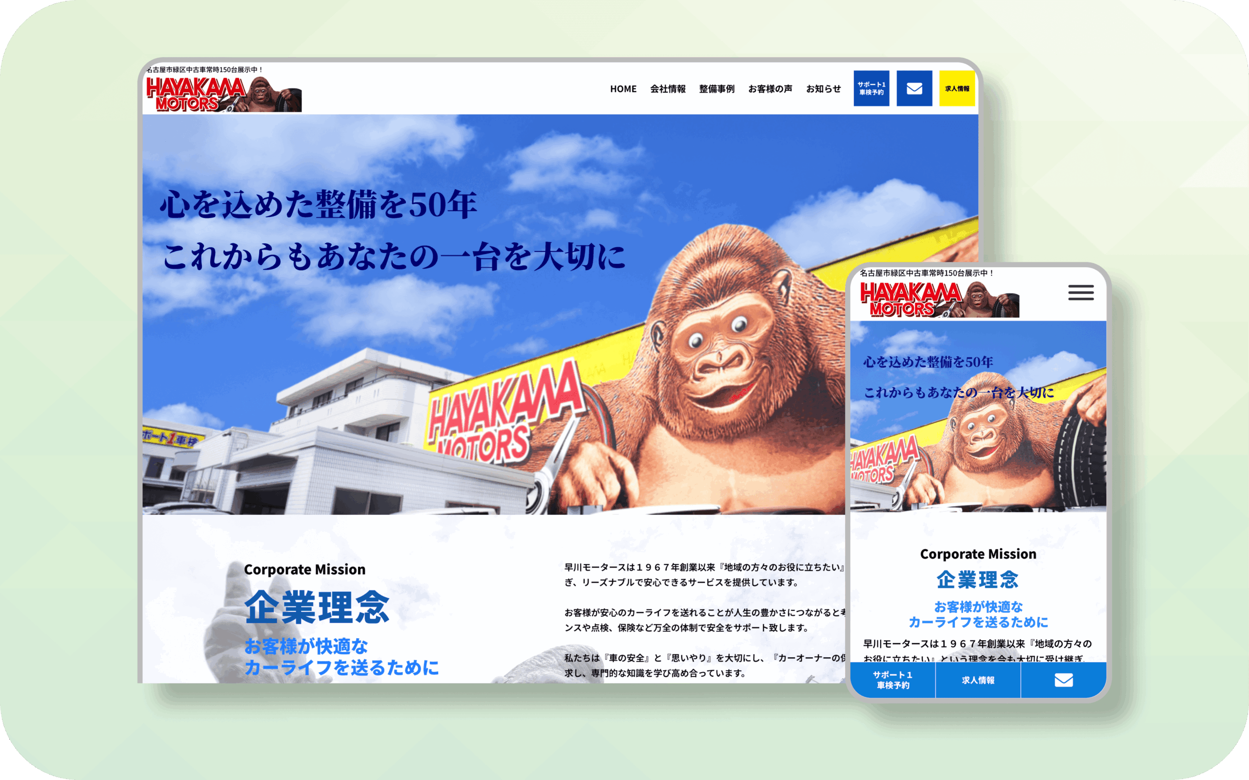 SHINOBI-WEBはコミュニケーションコストを極力減らすために各所文章、画像を変更できるように制作しています。